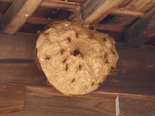 蜂の巣は見た目以上に危険で、無理に手を出すと刺されるリスクがあります。
